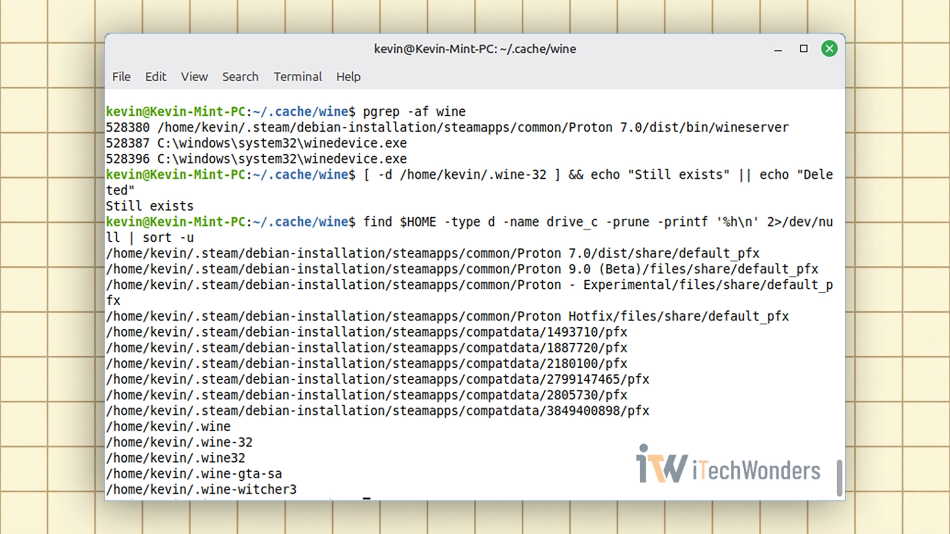 Note about Steam and Proton: If you have Windows games installed through Steam using Proton, the output will include paths like /.steam/steam/steamapps/compatdata/<appid>/pfx. Proton uses Wine prefixes for its compatibility layer, so these directories also contain drive_c folders. Be careful not to delete Proton prefixes unless you know what you’re doing.